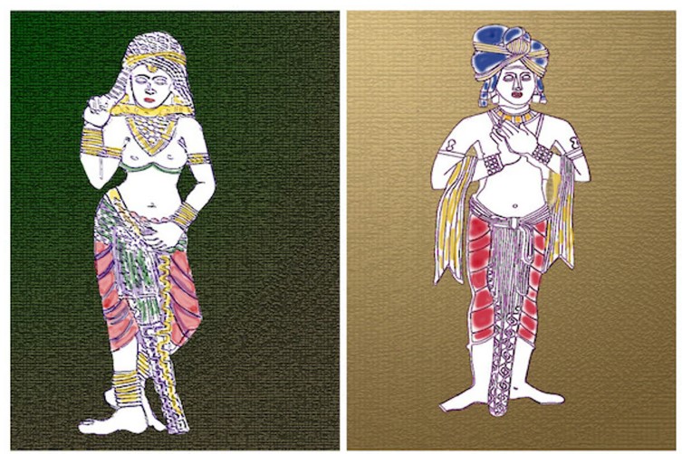 Early clothing of the Maurya period didn’t change much from the previous Vedic period. The garments consisted of three sections: The antariya, a rectangle of fabric that was wrapped around the waist, the kayabandh a scarf that was used to secure the antariya, and the uttariyas which was draped over the head and shoulders to cover the upper chest.1